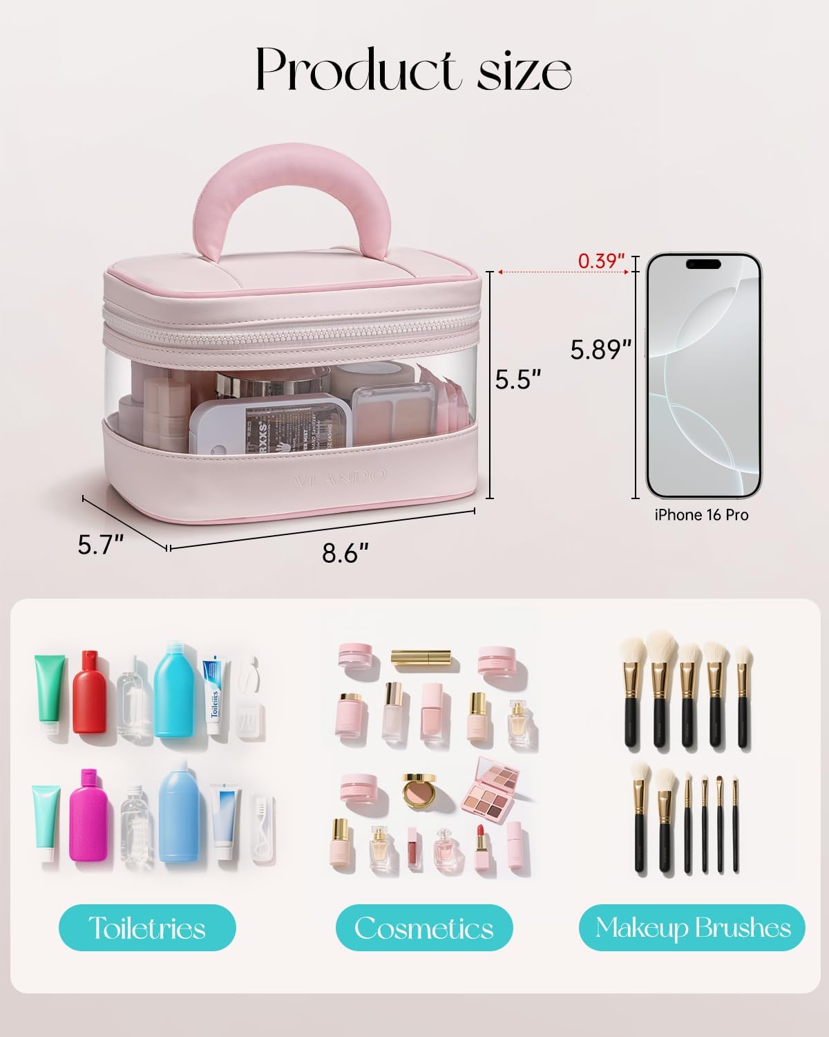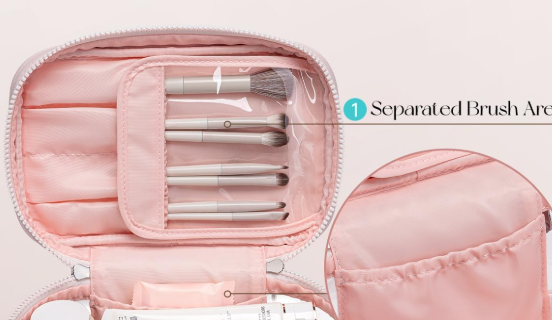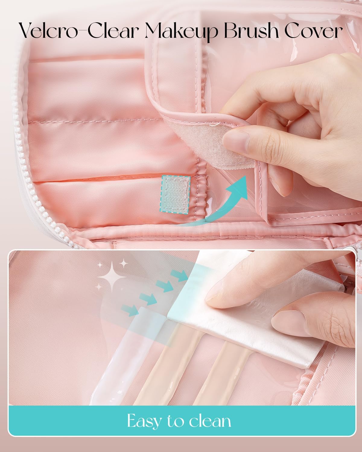 ·Separated Brush Compartment: This make up bag features an independent brush section with a transparent cover, keeping brushes dust-free and neatly stored , perfect for a toiletry bag for women.